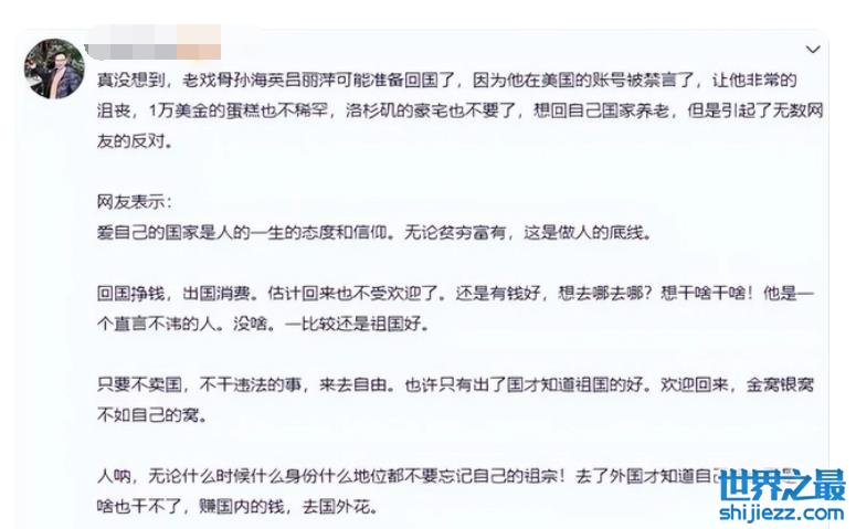 不少网友表示,孙海英估计也察觉到国外言论并没有他想得如此自由,但依旧很嘴硬。不仅如此,很多网友吐槽他们夫妻俩的奇葩言行,还说反对他们俩跑回国,看得出这对夫妻俩的口碑已经跌到谷底了。