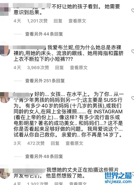此次布兰妮的大胆行径也遭受到了不少人的吐槽和嘲讽,不少人都怒斥她作为一个孩子的妈妈没有一点母亲的样子,也有很多喜欢她的人不能理解她爱在公众平台上分享大尺度照片的举动。