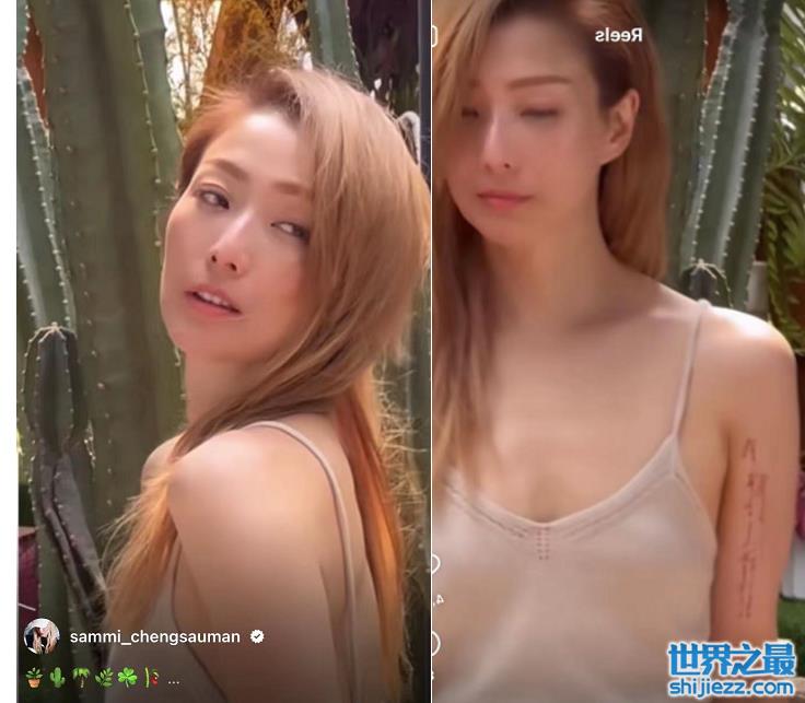 郑秀文穿低领吊带拍照!胸口太瘦出排骨线条,胳膊上粉色纹身抢眼 ...