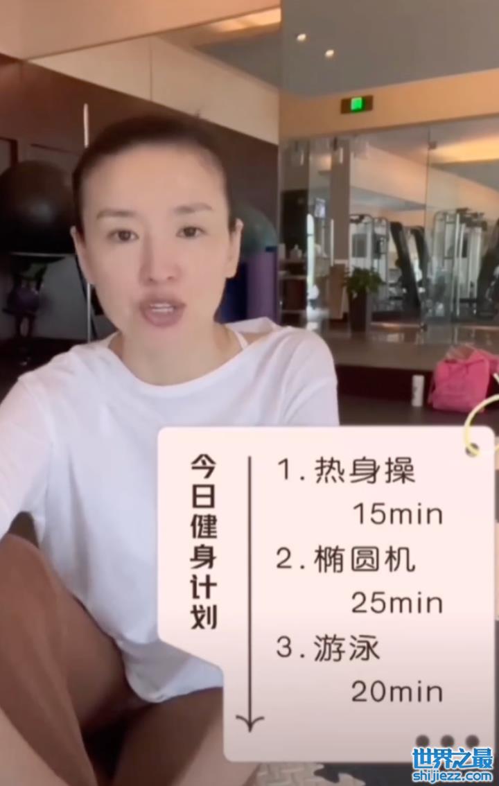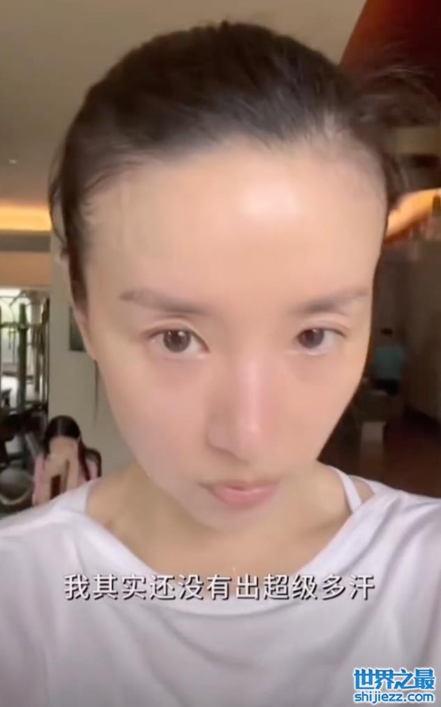 董洁做完有氧运动之后就开始进行了踩踏板活动,视频中能看出她已经被汗水浸透的衣领,她还表示着自己不太爱出汗。