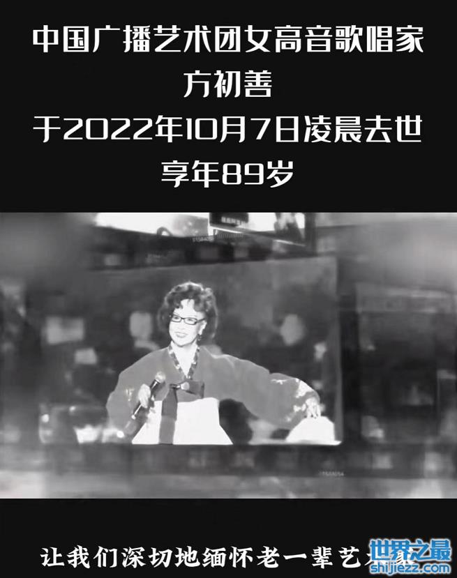 据中国广播艺术团报道,10月7日凌晨,我国著名朝鲜族女歌唱家方初善与世长辞,享年89年。