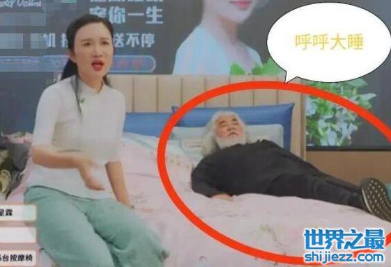 在某次带货过程中,张纪中就因为太累,直接在后面的展示品上睡着了。