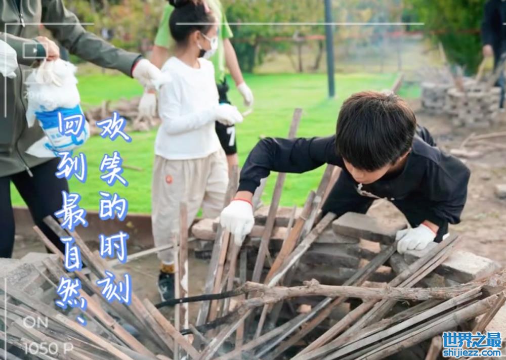 不仅体验了田地里的劳动,花花和哥哥等等还动手收集竹条木柴等烧火工具,两人戴着手套跃跃欲试。等等穿着一身黑衣十分显瘦,整个人几乎都要爬到石头堆上面去了,可见对此次活动体验的新奇感。
