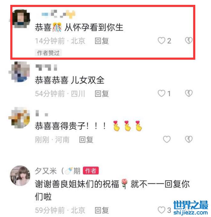不少网友看到夕又米的这条动态后,都给她评论点赞,有网友还说夕又米凑成了好字,恭喜她。而夕又米对这条评论进行了点赞,看来是默认了二胎宝宝是个儿子,但从她的字里行间也感受到了温暖与幸福。