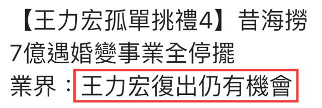 另外,台媒透露,王力宏复出仍有机会,但必须要自己振作才有更多机会,不过,他现在的重心是放到私事上,之前王力宏也曾发声透露会暂停工作3到5年,想来争取孩子的探视权才是他当下认为最应该做的事。