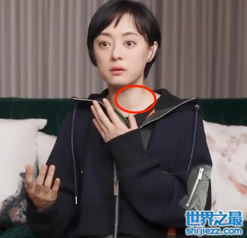 仔细看,孙俪的脖子也有一小块鼓包,看起来十分明显,就像是突然肿起来了一块一样。