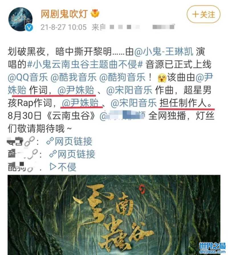说到《鬼吹灯》,尹姝贻也和此剧有重要关系。因为剧中的主题曲《不侵》的作词作曲制片人,都是她。此外,尹姝贻还在《隐秘而伟大》《拾光里的我们》等剧里,演唱插曲片尾曲。