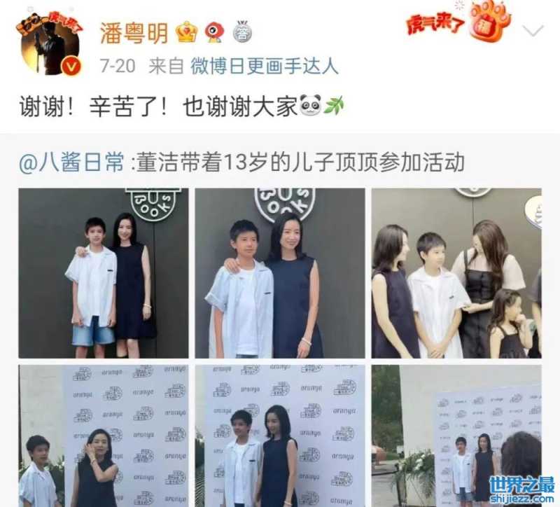 两人离婚后,儿子顶顶被判给董洁抚养,据说,董洁不让潘粤明去看儿子。这么多年过去了,顶顶长大了,前段时间董洁带他出席活动,潘粤明转发营销号的动态,引起热议,大家都觉得那段婚姻给潘粤明打击太大,居然要靠这样的方式,看望儿子。