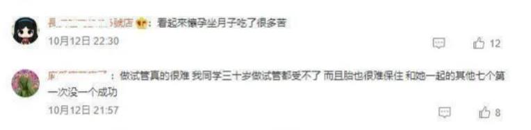 网友们也说做试管怀孕是很难的一件事,还有网友说她看起来怀孕做月子时吃了不少苦头,所以才会语气中透着一种辛酸。