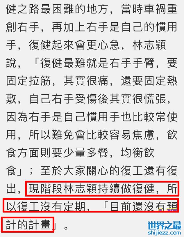 另外,问到准备什么时候复工,林志颖表示暂时还没有复工计划,现阶段仍要持续做复健,所以复工没有定期。