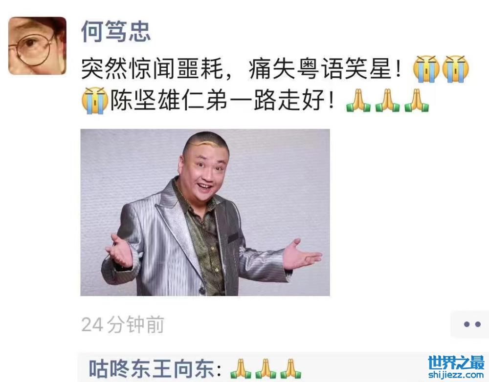 国家一级编剧何笃忠也悲痛发文送别,突然惊闻噩耗,痛失粤语笑星,陈坚雄仁弟一路走好。