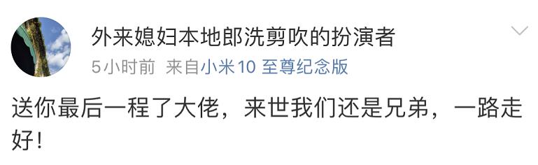 《外来媳妇本地郎》洗剪吹扮演者发文“送你最后一程了大佬,来世我们还是兄弟,一路走好。”