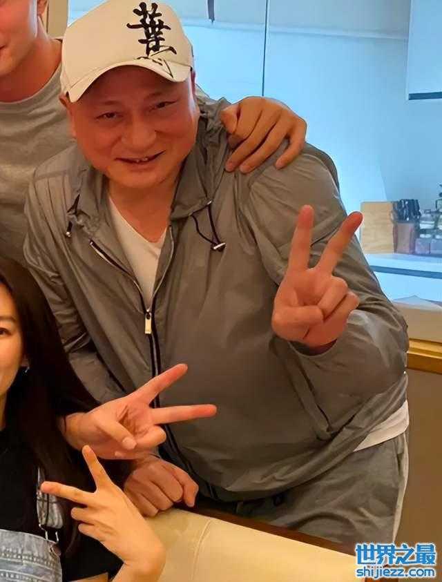 站在最右边的汤镇业打扮休闲随性看上去容光焕发,丝毫看不出他与众人的年龄差,右手比着耶,对着镜头露出了高兴的笑容。