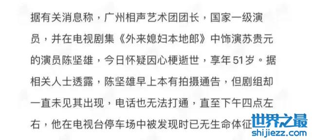 10月15日,演艺圈再传噩耗,51岁的演员陈坚雄因为突发心梗不幸离世,让不少网友感到唏嘘与遗憾。
