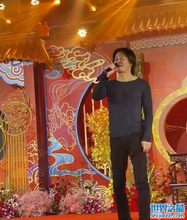 与此同时,55岁的景岗山也出现在了这场寿宴商演舞台上。不过他还是一如既往地打扮随意,穿着一套宽松的黑色休闲服就站上台,衣服款式看起来有些过时,许久不见的他头发都已经长到了肩膀,拿着话筒在舞台上动情献唱。