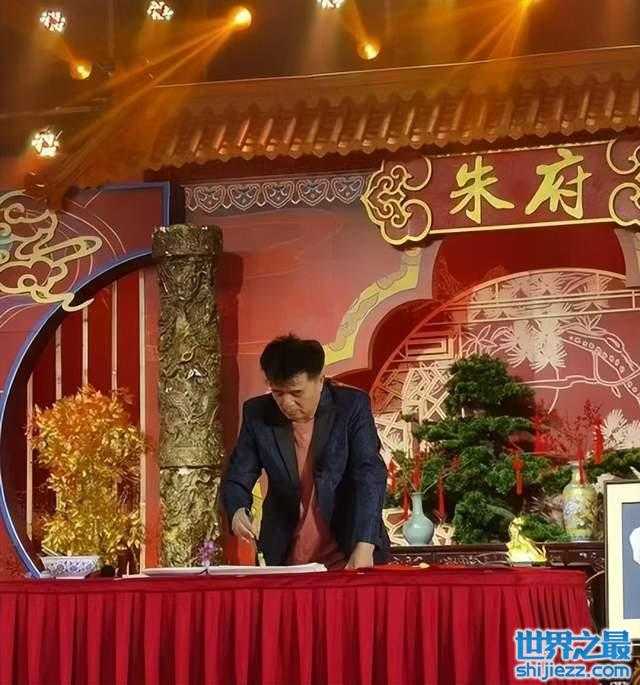 从网友晒出的照片中可以看出,这次的寿宴排场也是摆得相当的喜庆,现场布置古色古香,中间特地搭起了舞台。而在舞台上也看到了不少熟悉的老面孔,例如耳熟能详的毕福剑,也是一身西装非常精神,站上了舞台。已经很少出现在公众视野的他,身材看起来发福不少,在舞台上还为大家现场秀了一把书法,神情专注,看起来姿势也很专业。