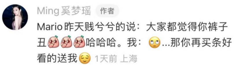 接着,她还评论说听完老公的吐槽,她就让对方买一条好看的送自己。