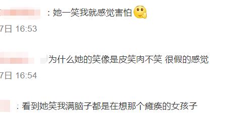 永远模式化、笑意不达眼底的笑容,就会让很多人对她的假笑产生排斥,甚至说一看见她笑就感到害怕: