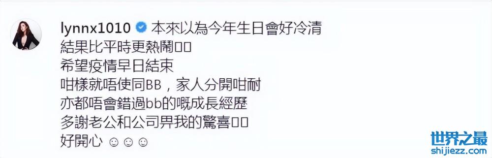 在迎接自己42岁生日的时候,熊黛林配文:本来以为今年生日会好冷清,结果比平时更热闹,希望疫情早日结束,希望自己不要错过孩子们的成长,多谢老公与公司给自己的惊喜,好开心。