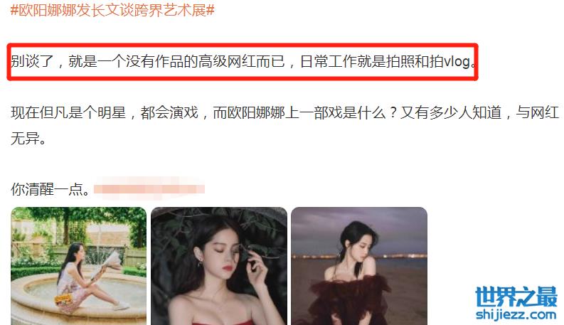 现在,欧阳娜娜在各个社交平台上,也都是一直靠晒美照、发Vlog来增加曝光度,感觉真得不像明星,像个网红。
