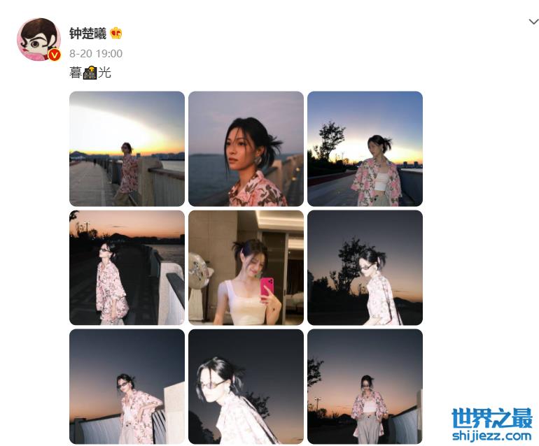 而钟楚曦呢,日常也是在社交平台上晒晒各种美照。