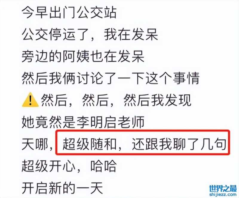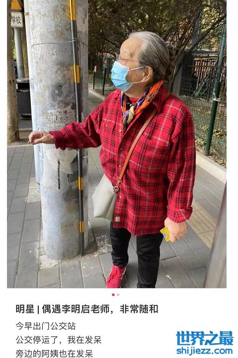 近日,有网友在社交平台上晒出了偶遇李明启等公交车的画面,当天因为公交车突然停运的原因,很多乘客都站在公交车站空等着,其中就包括李明启老师。