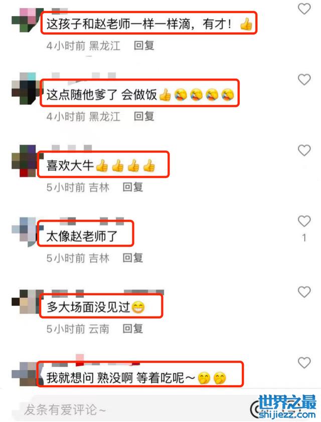 赵一楠这一系列的操作,网友们纷纷在评论区夸赞着并打趣地评论道“这点随他爹了,会做饭;我就想问,熟了没有啊,等着吃呢。”看来网友们对于会做饭的大牛表示相当的肯定,而且看着屏幕里的牛排,可见网友们也属实被馋到了。
