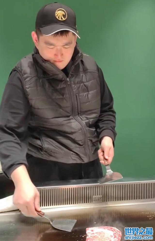 从视频中可以看到,赵一楠面色红润,眉眼之间神似父亲赵本山。他打扮十分随性休闲,头戴黑色鸭舌帽,身穿长袖加马甲,双手拿着铲子正在专心致志做着牛排,从牛排的颜色来看应该是该开始没多久,但看着赵一楠娴熟的手法,每一套动作都行云流水干净利落,颇有一番专业厨师的架势。