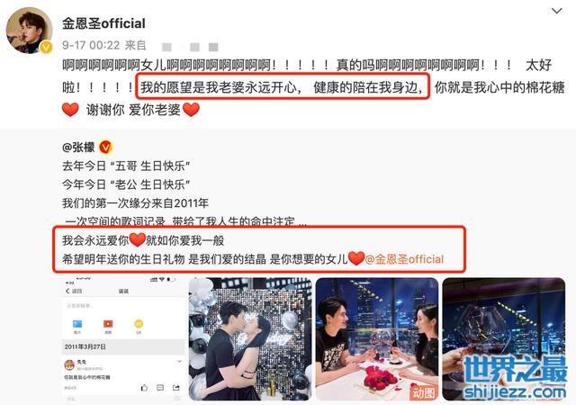 上个月金恩圣迎来34岁的生日,老婆张檬在社交平台高调表白,直言“会像你爱我一样去爱你”,还明确表示希望明年给金恩圣送的生日礼物是两人爱的结晶——可爱的女儿。当天两人共进烛光晚餐,度过了一个浪漫的夜晚,搂腰亲吻互表爱意。