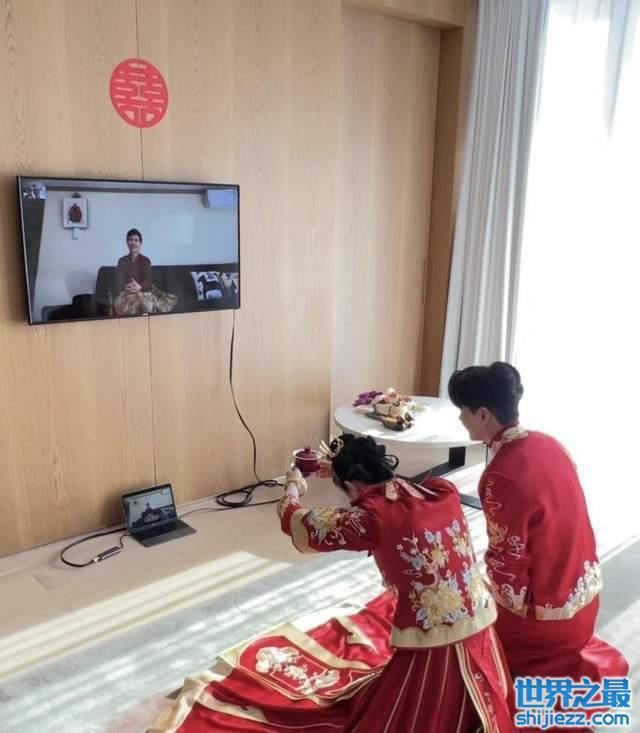 或许是因为种种原因,新郎金恩圣的家人没能够来到现场,但是他们也通过屏幕来参与了这场仪式。张檬隔着屏幕对着婆婆敬茶,不得不说这方式也是足够特别。