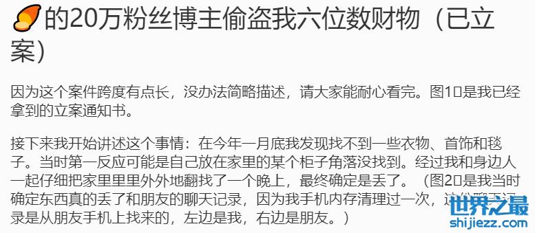 近日,有网友在社交平台爆料某二十万粉丝网红博主盗窃她超过十万的财物,目前她已经晒出立案截图,并表示已经请律师一起介入调查。