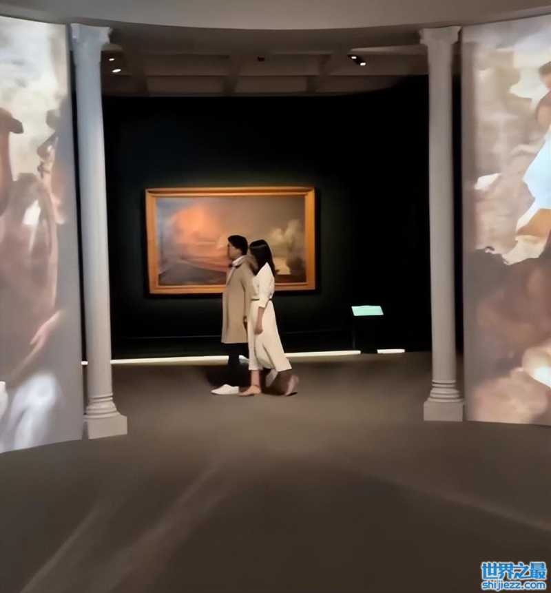 郭晶晶霍启刚夫妻秀恩爱,在艺术馆内牵手拍摄浪漫的影片