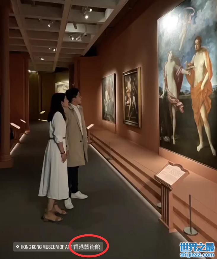 从镜头中看,当天艺术馆里前来观赏的游客并不多,空荡荡的大厅里几乎只有夫妻两人甜蜜依偎的身影,在观看的过程中,两人全程亲密牵手,比热恋的情侣还要腻歪,可以感受到霍启刚对郭晶晶也是相当宠溺,一直跟随妻子的脚步把控节奏,每当郭晶晶看到感兴趣的作品之际,自己也会特意驻足陪其观赏。