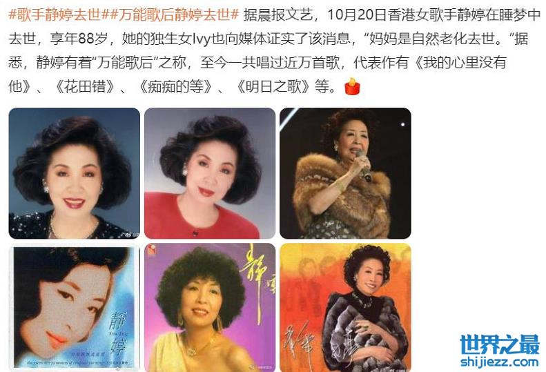 88岁“歌后”静婷去世!梦中自然死亡,凭《我的心里没有他》爆红 ...