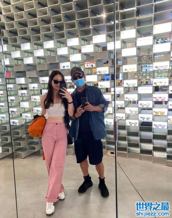 而他和小女儿Jada还一起出去逛街买买买,从合影的背景来看他们俩应该是去买墨镜,后面一面墙都是各种各样的墨镜。Jada当时穿着白色吊带搭配粉色长裤,大方秀出好身材,一双大长腿十分吸睛,她脸上还戴着一副大墨镜,不知是不是李连杰刚为她购买的。