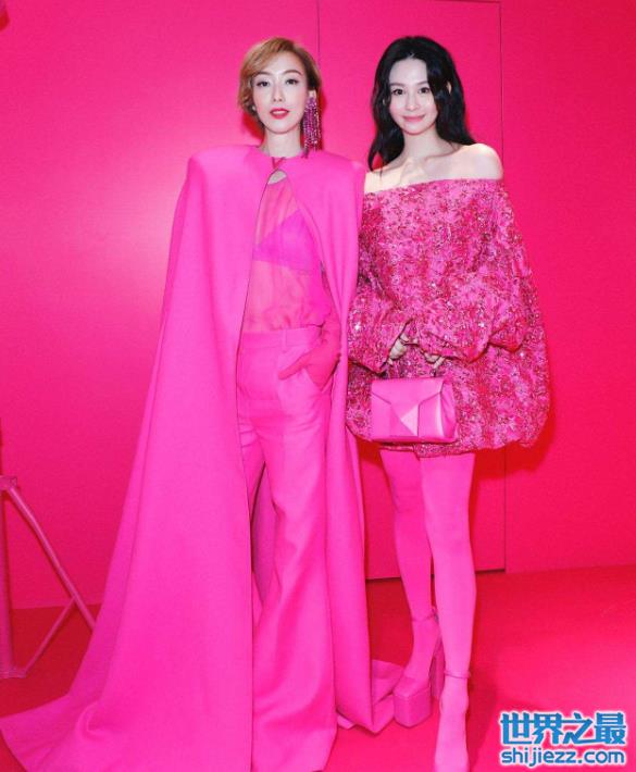 之后她还穿着一身芭比粉现身奢侈品活动上,与郑秀文同台合影,通稿也是满天飞。