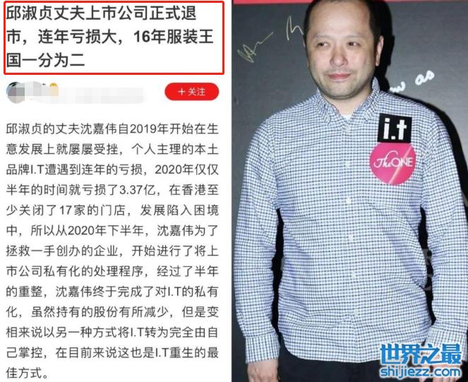 邱淑贞的老公名为沈嘉伟,是服装公司I.T的创始人,早期他的品牌发展迅猛,在2005年就成功上市。