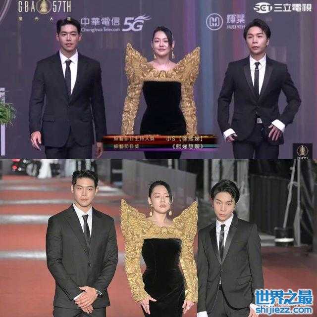 参加金钟奖经验,可以看得出时尚野心很大的选了Moschino这条2022秋冬华丽礼服裙出镜,为我们贡献了又一个黑榜年度丰富素材。