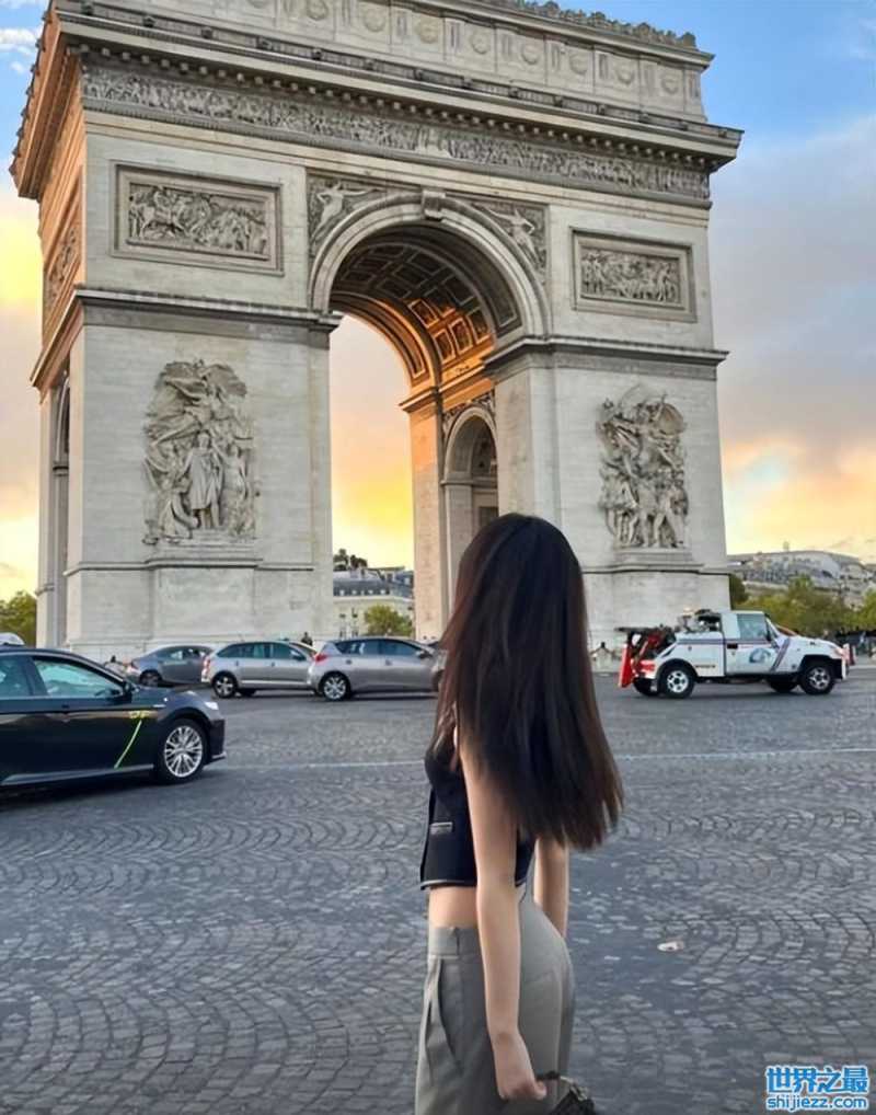 这一张是李嫣和同学们一起以背影还有侧身的形式留恋,在凯旋门前的她们拍摄自己的风格照片,日落下的凯旋门格外的美食,估计李嫣和同学们特意选择该时间段,只为留下靓影的那一刻。