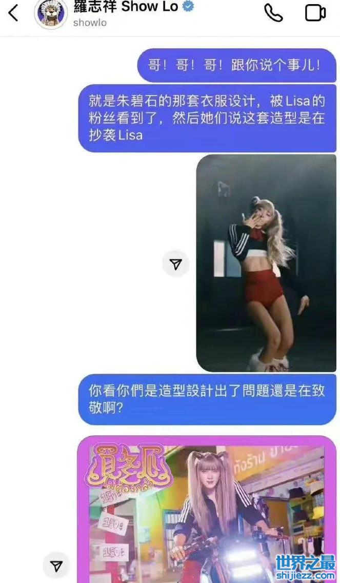 网友们扒出,罗志祥这张专辑的封面造型抄袭了Lisa,从网友们发出的对比图来看,罗志祥这专辑封面和Lisa的某款造型真的是一模一样,两人都扎着双马尾,同类型的运动上衣搭配短裤,脚踩毛毛鞋。
