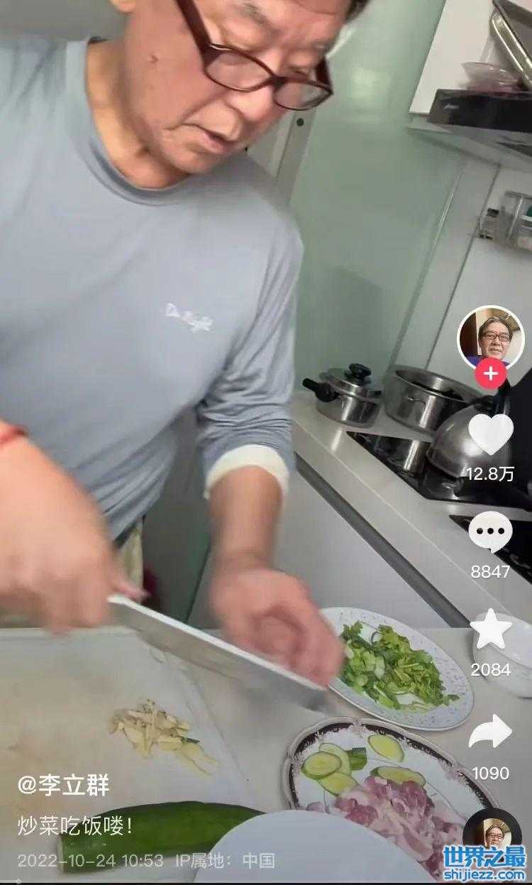 12点钟,李立群把菜做好了,韭菜炒豆芽、黄瓜炒五花肉,然后对着镜头吃了几口。短短的30秒视频,收获了近11万点赞。