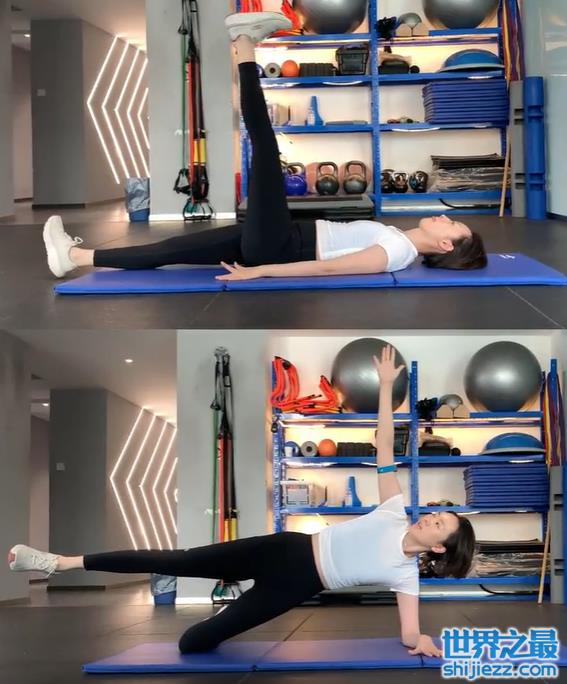 一组照片中童瑶身穿白色短T恤,紧紧包裹住她的躯干,露出一截小细腰,没有一丝赘肉。她躺在健身垫子上,将一只腿高高抬起,两只腿呈现90度夹角,看样子是有点功底在身上的。另外一张照片中,童瑶一只手撑在地上,一只腿单膝着地,整个人仿佛要飞起来,看得出核心力量十分强大。