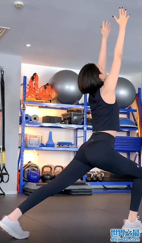 另外一张照片中,童瑶身穿运动背心,一双手臂纤细白嫩,向前做弓步拉伸,看得出腿部相当健康,蜜桃臀也是相当吸睛。
