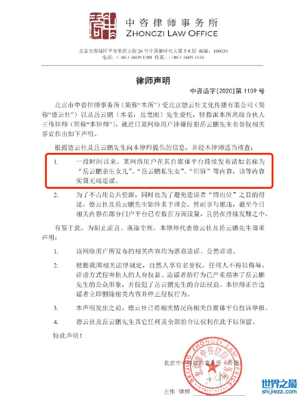 2020年,岳云鹏又被曝有私生女,很快德云社就发布了律师函,并表示这些全都是造谣。