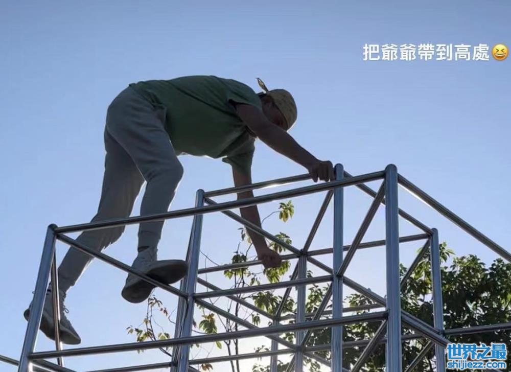 从镜头中看,秦汉与孙女Serena一起挑战了高难度的项目:爬高,为了鼓励孙女可以鼓足勇气完成挑战,爷爷秦汉打起头阵一口气爬上了架子的顶处,可以看出76岁的秦汉依旧是身姿矫健,毫不费力便轻盈登顶。