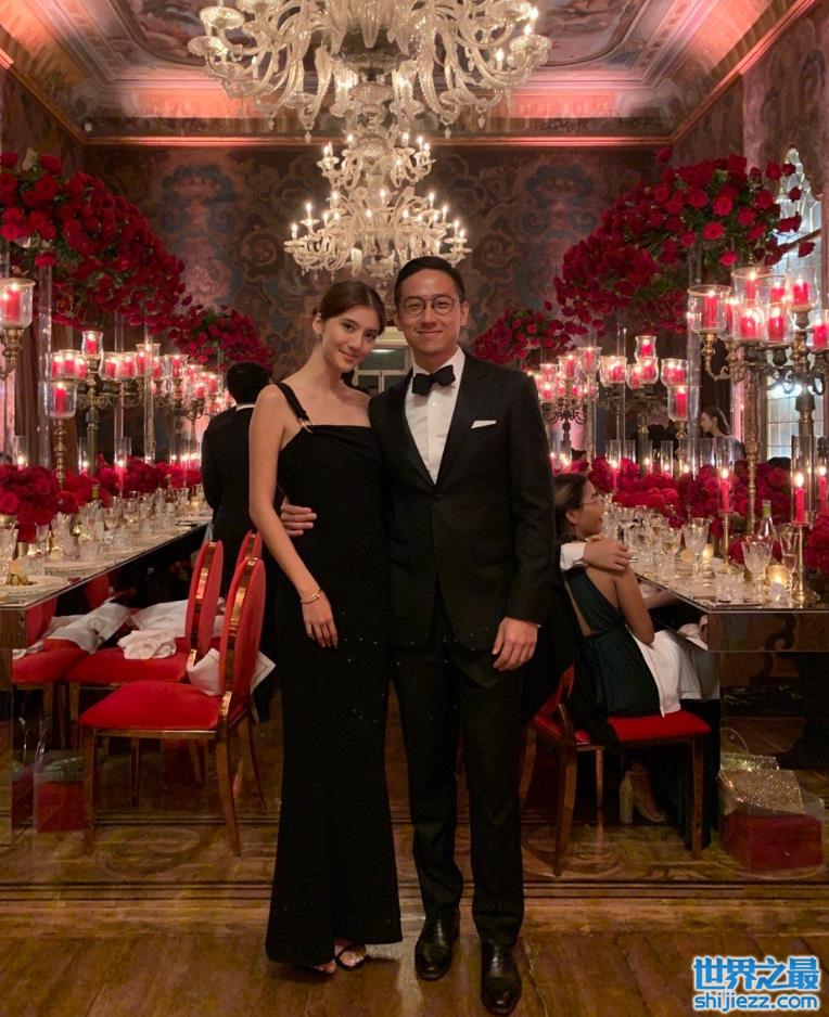 可以看到,施伯雄陪着吴千语一起参加过各类活动,走过许多地方。两人参加好友文咏珊婚礼时,打扮华丽隆重特别精致,吴千语穿着黑色修身裙身材完美气质出众,施伯雄西装革履好有贵公子的气质,戴着金丝框眼镜气质儒雅,俊男靓女十分登对。