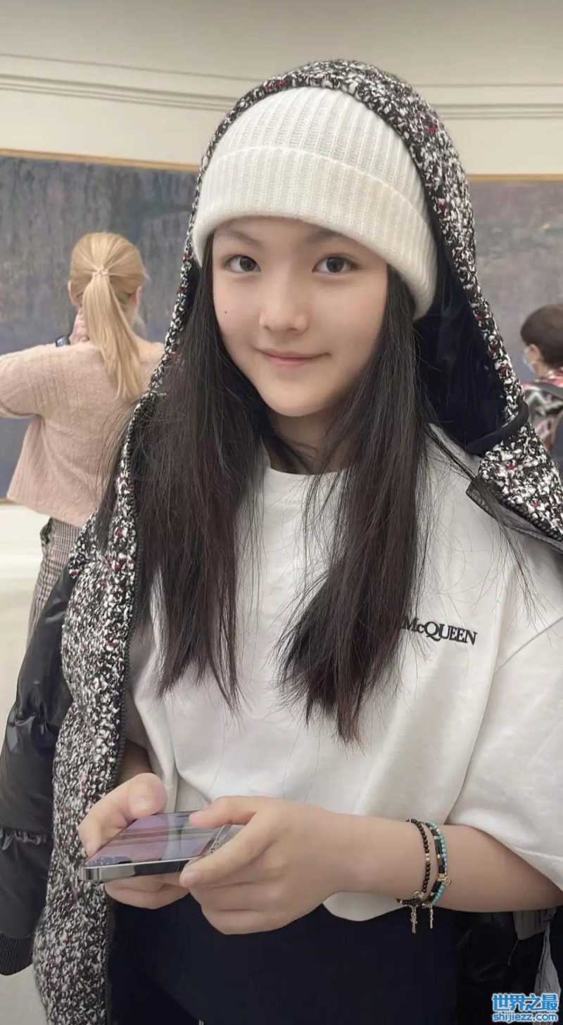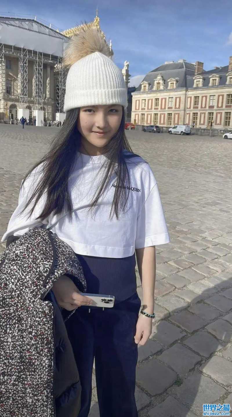 13岁王诗龄近照,穿万元衣服在国外游玩,下巴很尖越来越像妈 ...