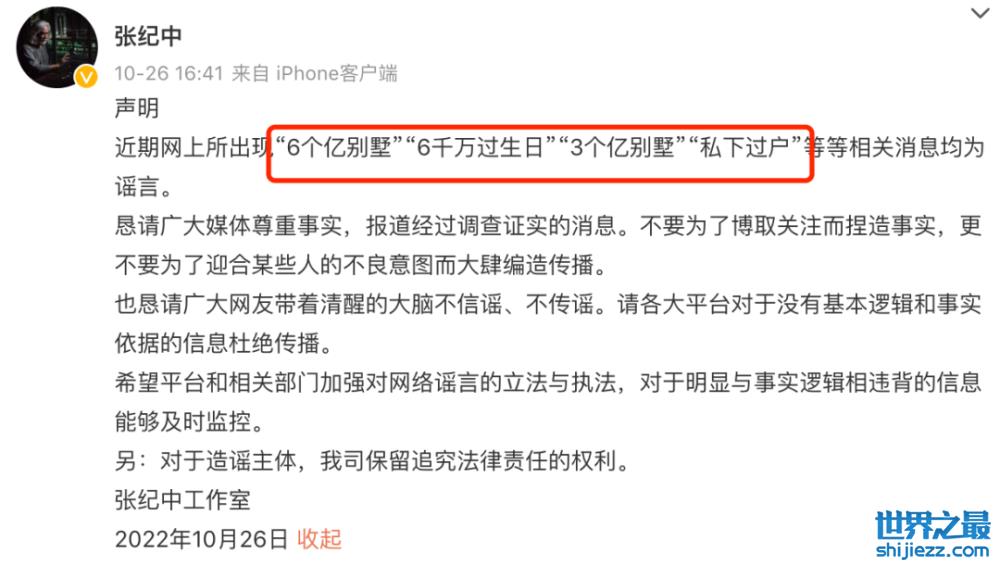 针对这些传言,张纪中发布辟谣声明,并将对造谣主体追究法律责任。