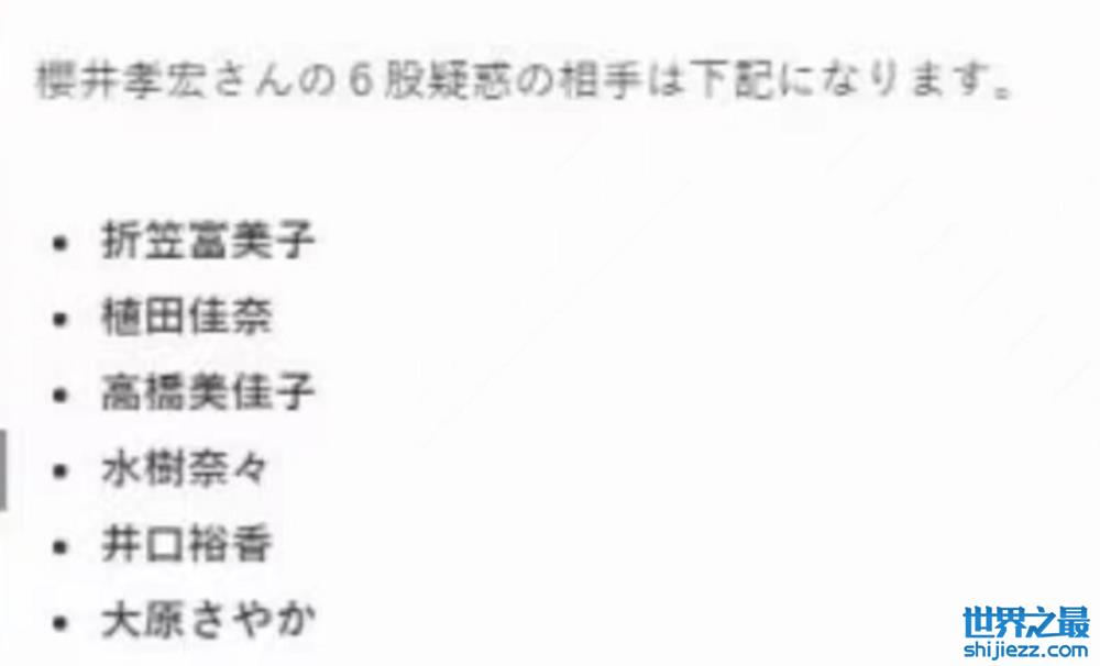 早在2013年,樱井孝宏就被曝脚踏六条船,日媒还公布了6位女生姓名。