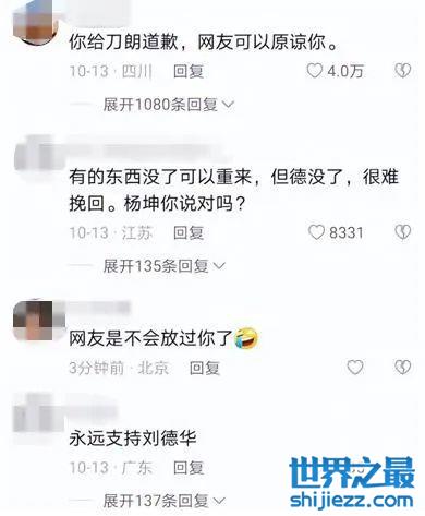 不知道杨坤是怎样想的,是真看不上刘德华的唱功还是只想制造舆论话题,反正此事流传出来可算是惹了众怒。要知道刘德华可是“四大天王”之一,举办过500场演唱会,专辑销量超过3000万张,在娱乐圈的影响力、粉丝数远超杨坤。杨坤不仅当年就被刘德华的粉丝和大众路人们骂过一波,在有记忆的互联网上,如此一开播还是会被网友们刷屏“刘德华”以讽刺杨坤太过自傲自负。